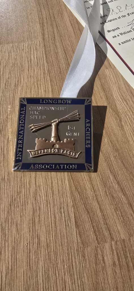 Chris currently uses a 70lb bow made by Ray Underwood and has started to use arrows that he’s made himself and is getting some very good scores. His good form has put him in with a decent shout at competition shoots. So far he’s finished 2nd in the 2014 Crecy Trophy and the 2015 Agincourt Trophy, and 3rd in both the 2015 and 2016 Robert Wallis Trophy.