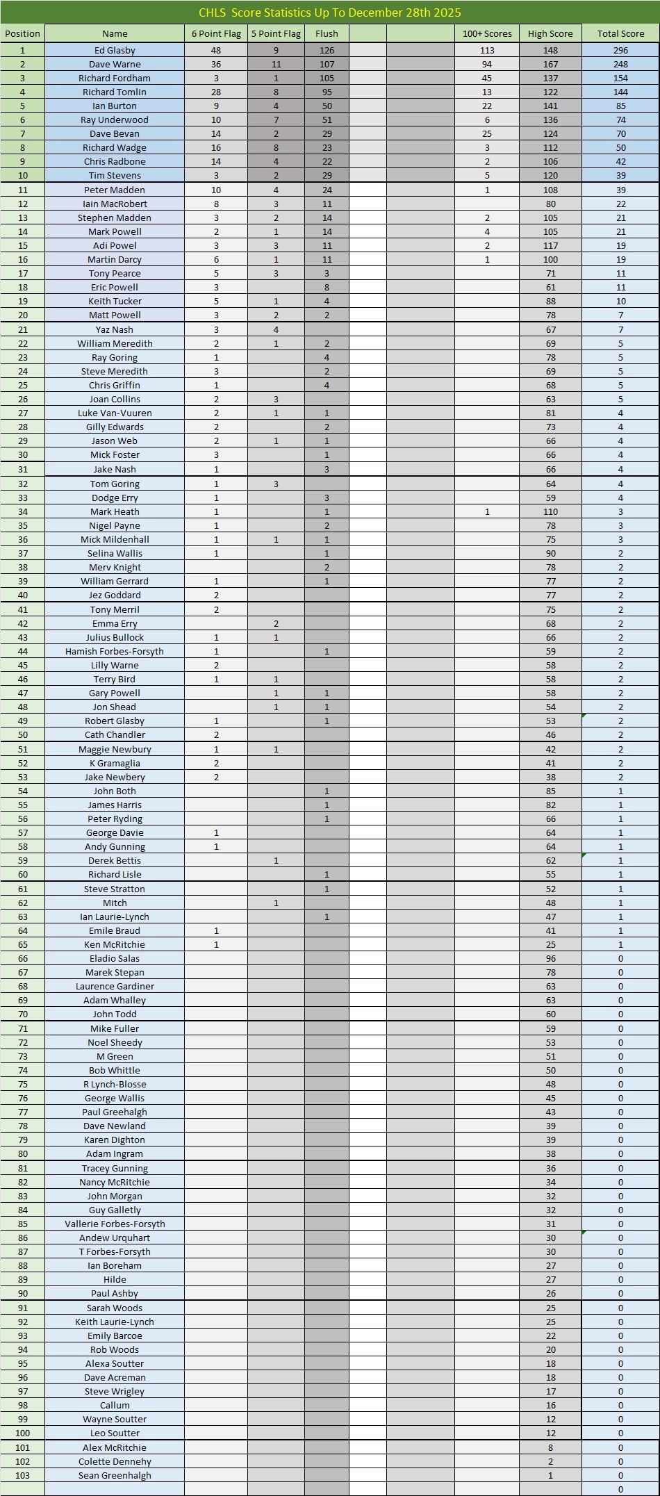 These are scores achived throughout the clubs history.